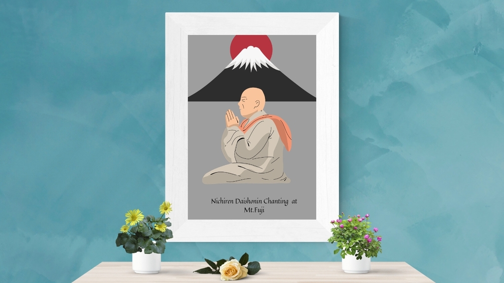 Nichiren Chanting Nam myoho renge kyo At Mount Fuji Pritable Wall Art in High Resolution JPEG and PDF Format.